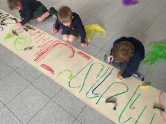 We would love the children to have another try at home in their homework book using pens or pencils - can they use all of the colours of the rainbow?