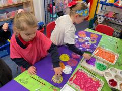 (Diwali dancing, spooky writing den, hopscotch with numbers up to 10, story massage, story time with books and story maps, Diwali firework painting, creating a colour wheel, Diwali diva lamps, phonics, looking at my body and bones, visiting the library,Squigle and a wiggle)