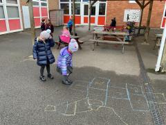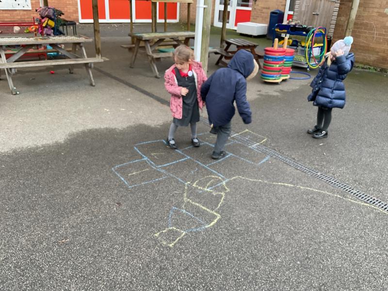 Yesterday, the Hippos enjoyed celebrating our special birthday by playing traditional childhood games. We enjoyed Stuck in the Mud, Rock, Paper, Scissors, Hopscotch, hoop games, skipping ropes, chalk boards, dominoes and Duck, Duck, Goose. We were especially good at congratulating others when they won. We also looked at photos of our school and Longton, from many years ago. What a fun day!