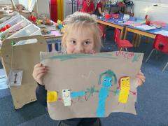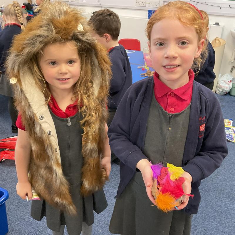 We will be sending home lots of art and craft projects this week. Some items are very fragile so we will send things home a little at a time each afternoon so they arrive home in one piece.