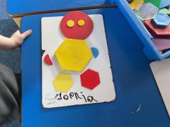 In Maths, we have been focusing on what 1 more looks like, using the numberblocks and we have created our own 'staircase' patterns using coloured squares.