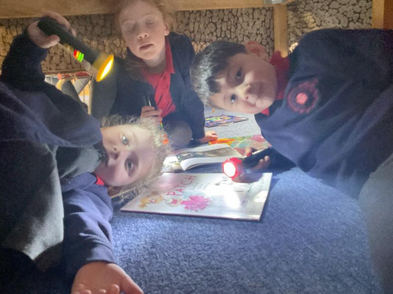 We shared the story 'Owl Babies' with the children and have enjoyed a whole host of learning activities with it. We have made nests with playdough, created owls using 2D shapes and enjoyed reading books with torches in our dark den.
