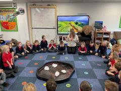 A special visitor, centenarian and ex teacher at Longton Primary Mrs Stewart and her daughter. Mrs Stewart entertained us with stories about her time as a teacher at Longton even teaching our very own Mrs Jackson.