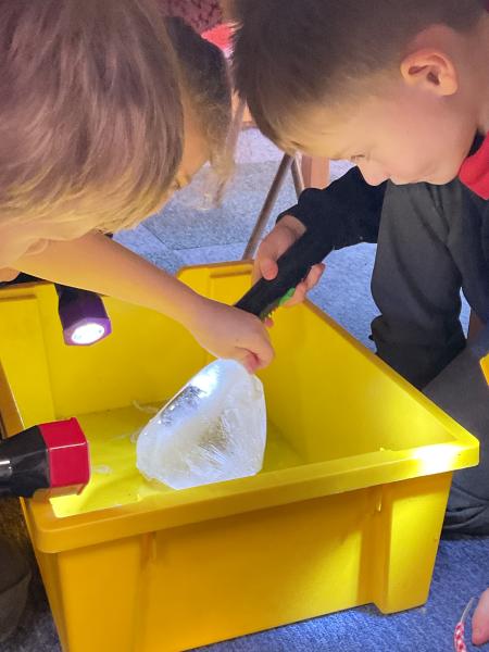Today we were scientists, trying to find out the best way to melt ice and free the animals!