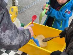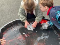 If you have a spare minute please encourage the children to help with the washing up and test different materials and objects.