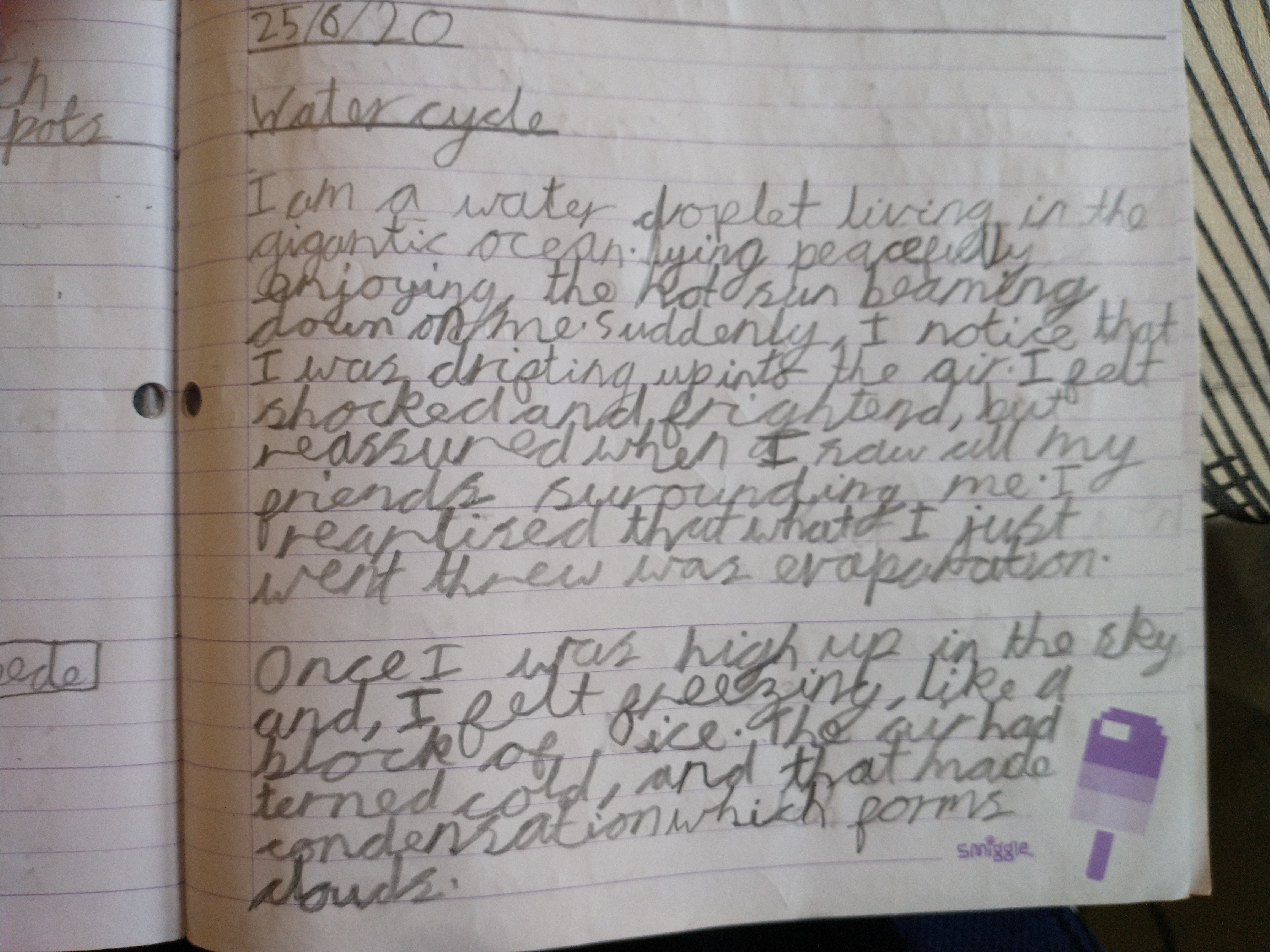 Joel has been busy completing the home learning and has sent through his water cycle report.